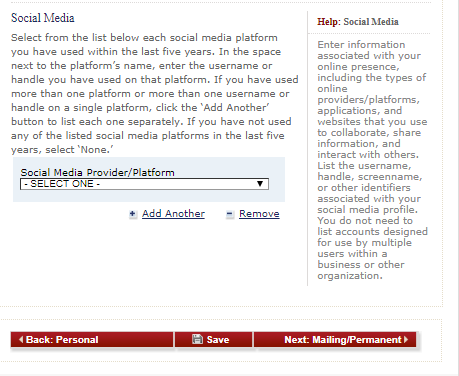 DS-260 Application 작성 시 추가된 Social Media 기재란